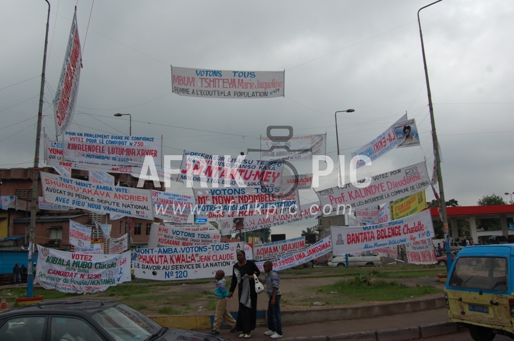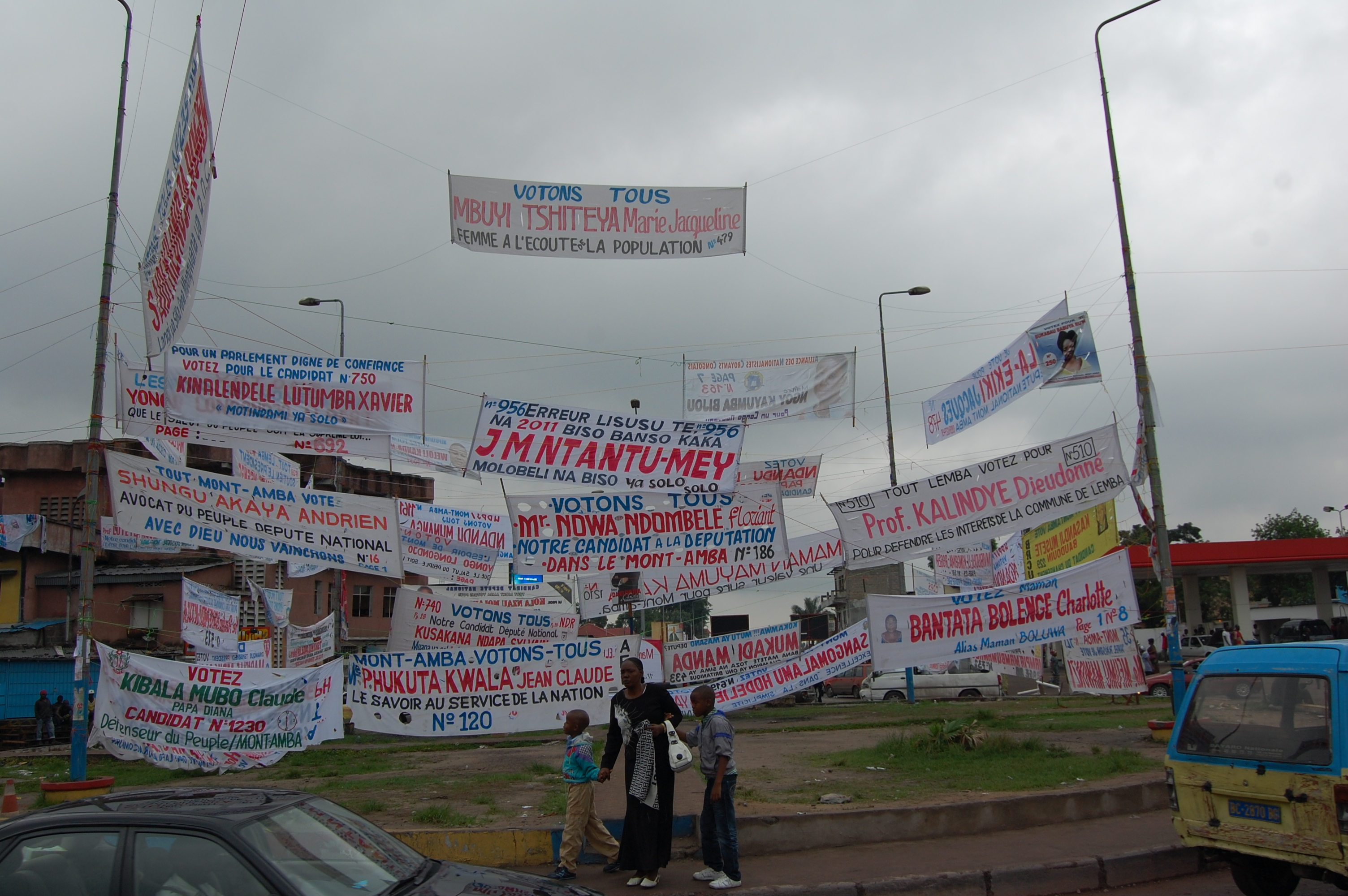En 2011, des calicots portant les messages des différents candidats à la présidentielle à Kinshasa