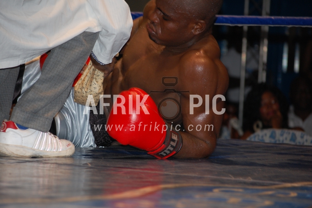 Un boxeur est sonné après un combat au Shark Club de Kinshasa